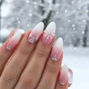 Blend white into pink for a frosted ombre effect, then top it off with delicate snowflake art.