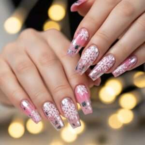 These 12 pink Christmas snowflake nail designs blend the charm of winter with the elegance of pink — from soft frosty looks to glitzy glam sets.