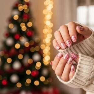 Pink Christmas nails are perfect for anyone who wants to blend festive cheer with a touch of elegance and femininity.