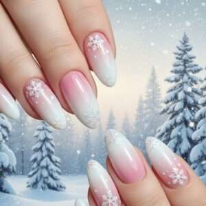 Soft gradient nails that fade from white to light pink give off dreamy winter wonderland energy.