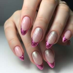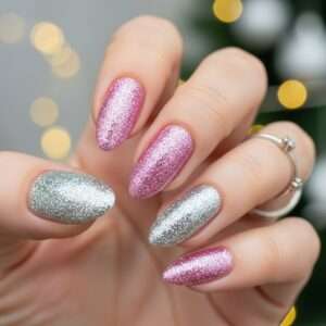 If you love sparkle, go all out with a pink and silver glitter combo.