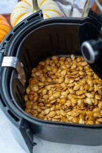Preheat your air fryer to 360°F (182°C). Spread the seasoned pumpkin seeds in a single layer in the basket.