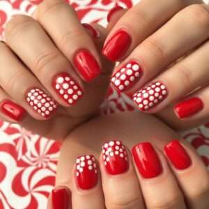 End the list with an easy favorite! Paint your nails red and add small white dots using a dotting tool or a bobby pin.