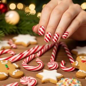 Bring a touch of sweetness to your manicure with candy cane stripes.