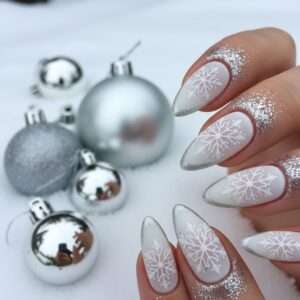 Add tiny gold stars or silver lines for extra sparkle. It’s simple, classy, and fits the winter mood perfectly.