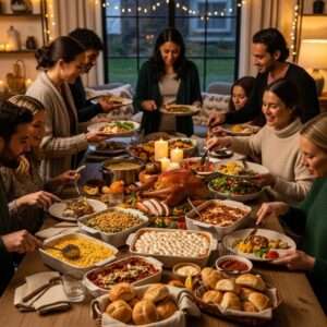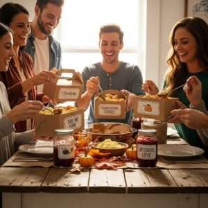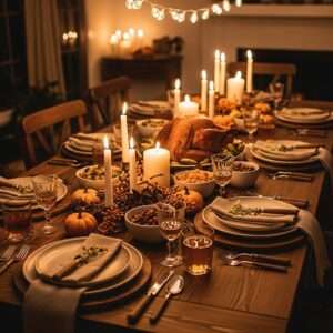 Give your gathering a unique vibe with a theme—like “Rustic Potluck,” “Pajama Party Thanksgiving,” or “Elegant Autumn Feast.”