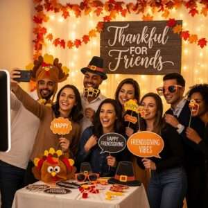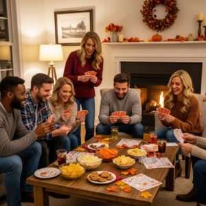 Try “What Are You Thankful For?” card prompts, a trivia quiz about your group, or even a “Friendsgiving Bingo.”