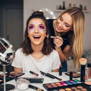 Try out new looks on each other! You can swap styles, test new products, or even do blindfolded makeup challenges for laughs.