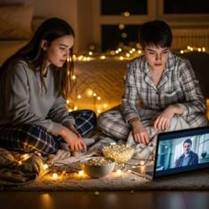 Sometimes the best part of a sleepover is simply talking until sunrise — about life, crushes, dreams, or anything that comes to mind.