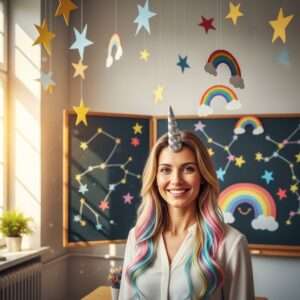 This look is especially fun for teachers who want to spread positive energy and a little magic throughout the school.